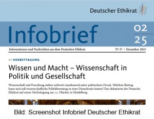Am 16.12.25 hat der Deutsche Ethikrat den Infobrief 02/25 mit Berichten zu seiner Arbeit in der zweiten Jahreshälfte 2025 veröffentlicht. Der 16-seitige Infobrief ist auf der Ethikrat-Webseite kostenlos als PDF-Download abrufbar.